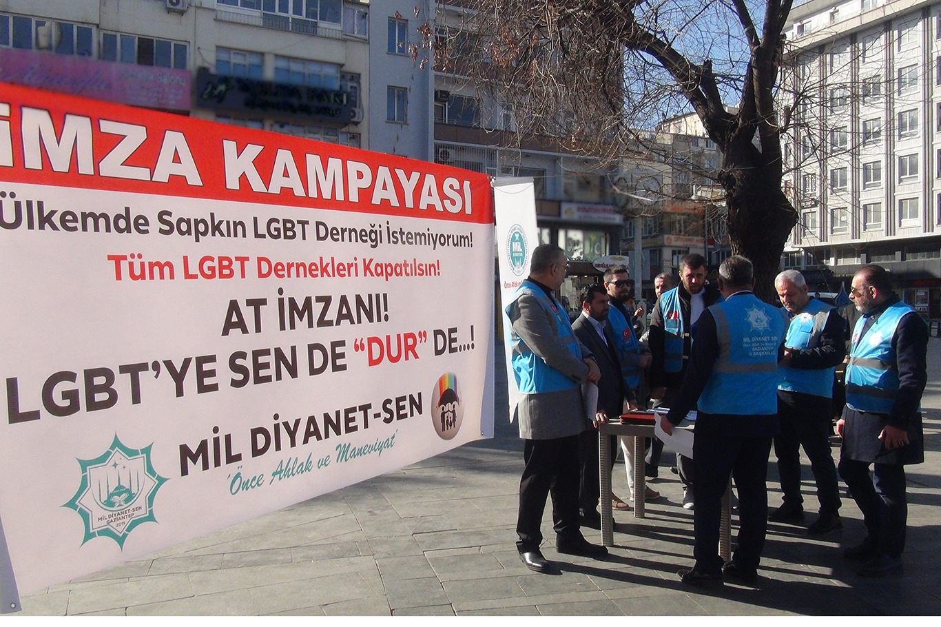 Yetkili mercileri göreve davet eden Mil-Diyanet Sen Gaziantep il Başkanı Atıf Deniz, "Malumunuz olduğu üzere; Cumhurbaşkanımız Sayın Recep Tayyip Erdoğan, 'LGBT gibi sapkın bir yapıyla mücadele edeceğiz.' ifadelerini kullanmış ve buna istinaden 2025 yılını 'Aile Yılı' olarak ilan etmiştir. Bizler de, ailede ve toplumda yaşanan sosyal çürüme ve ahlaki yozlaşmayı önlemeye ilişkin ciddi çalışmalar yürüten Mil-Diyanet Sen olarak, sayın Cumhurbaşkanımıza destek olmak için bugün bu imza kampanyasını başlatıyoruz. Önce Ahlâk ve Maneviyat" sloganıyla yola çıktığımız ilk günden bu yana, neslimizi ve kutsal aile yapımızı ifsat eden her türlü yapıyla mücadele ediyor ve LGBT derneklerinin kapatılması için gayret sarfediyoruz. Ayrıca bunların sözde kalmaması için gerekenleri de yapıyoruz. Hatta farklı tarihlerde İçişleri Bakanlığına, LGBT derneklerinin kapatılması için iki defa dilekçe vermiştik. Bugün burada talebimizi tekrar ediyor ve İçişleri Bakanlığı'nı görevini yapmaya davet ediyoruz." ifadelerini kullandı.