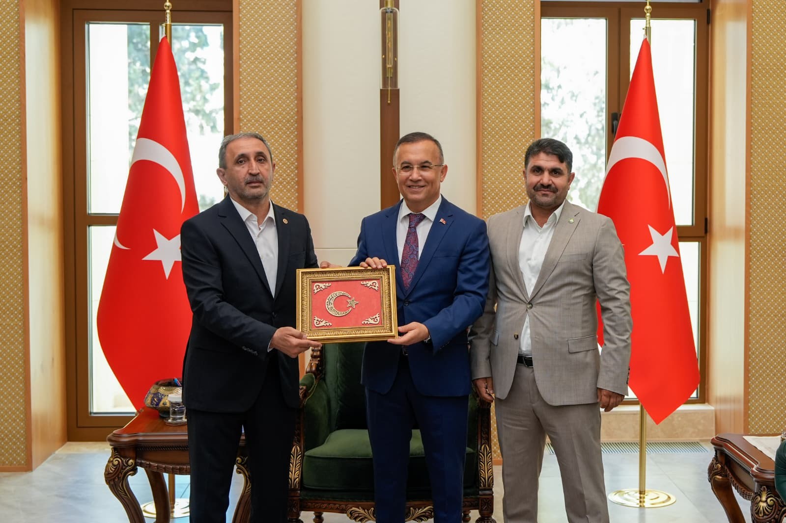Ziyaretin sonunda HÜDA PAR Gaziantep Milletvekili Şehzade Demir, Gaziantep Valisi Kemal Çeber'e ay yıldız işlemeli tablo hediye etti.