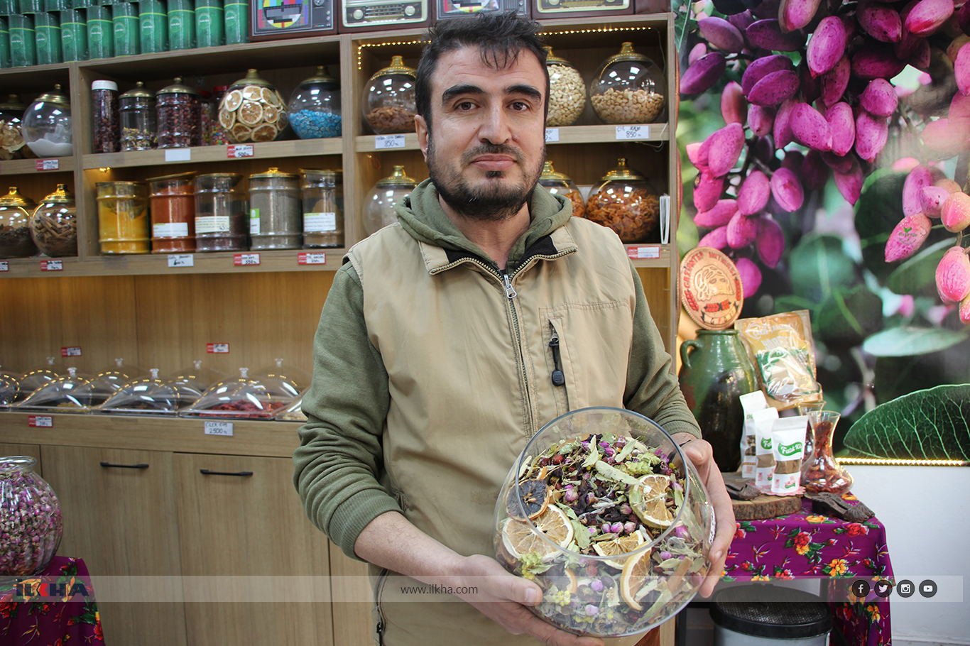 Yöresel ürün satıcısı Hurşit Aktaş, mevsim geçişlerinde yaşanan ani hava değişimlerinin insan sağlığını olumsuz etkilediğini belirterek, özellikle bitkisel çayların bağışıklık sistemini güçlendirmede önemli rol oynadığını ifade etti.