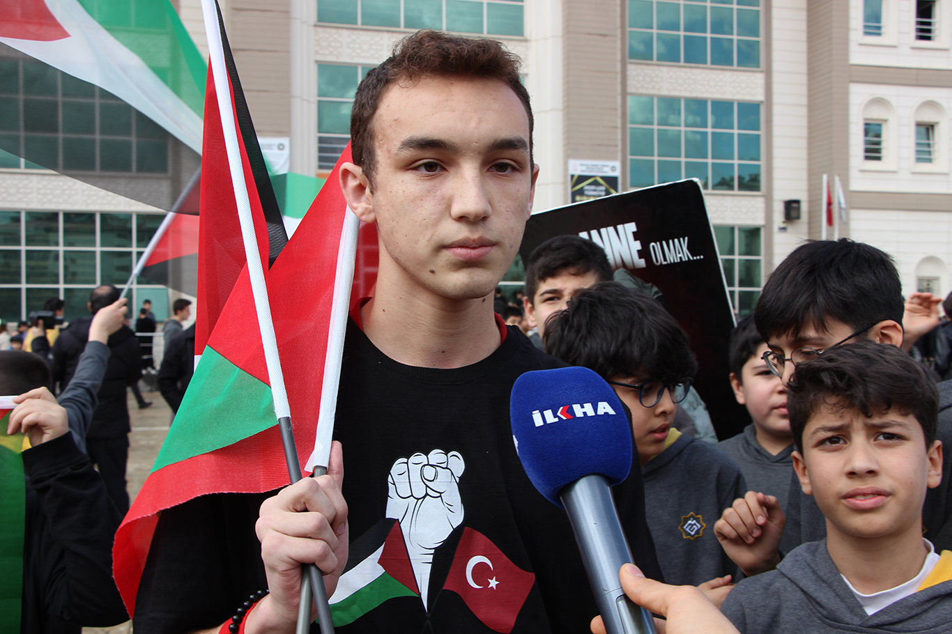 Gazze için basın açıklaması düzenlediklerini dile getiren öğrencilerden Ahmet Selim Erdokur, "Biz bu programı düzenlerken bir amacımız vardı. Amacımız, israile giden yardımları azaltmak ve israilden ürün alımını düşürmekti. Çünkü israil, Doritos, Coca-Cola, Pepsi gibi ürünlerle bizden kazandığı paralarla çocukları, yaşlıları ve bebekleri öldürüyor. Nasıl bizim okuma, beslenme ve barınma hakkımız varsa, onların da bu haklara sahip olması gerekir. Eğer biz bu ürünleri almaya devam edersek, onlar bu haklara sahip olamayacak ve zulme uğrayacak. Çünkü israilin aldığı kararlar doğrultusunda binlerce çocuk ve yaşlı,esir oldukları, evlerinde bulundukları ya da eğitim gördükleri için öldürülüyor. Buna zulüm deniliyor. Bizim bu zulmü engellememiz gerekiyor." dedi.