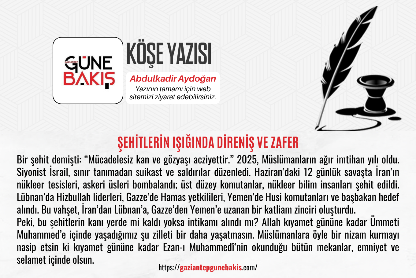Bir şehit demişti: “Mücadelesiz kan ve gözyaşı acziyettir.” 2025, Müslümanların ağır imtihan yılı oldu. Siyonist İsrail, sınır tanımadan suikast ve saldırılar düzenledi. Haziran’daki 12 günlük savaşta İran’ın nükleer tesisleri, askeri üsleri bombalandı; üst düzey komutanlar, nükleer bilim insanları şehit edildi. Lübnan’da Hizbullah liderleri, Gazze’de Hamas yetkilileri, Yemen’de Husi komutanları ve başbakan hedef alındı. Bu vahşet, İran’dan Lübnan’a, Gazze’den Yemen’e uzanan bir katliam zinciri oluşturdu.