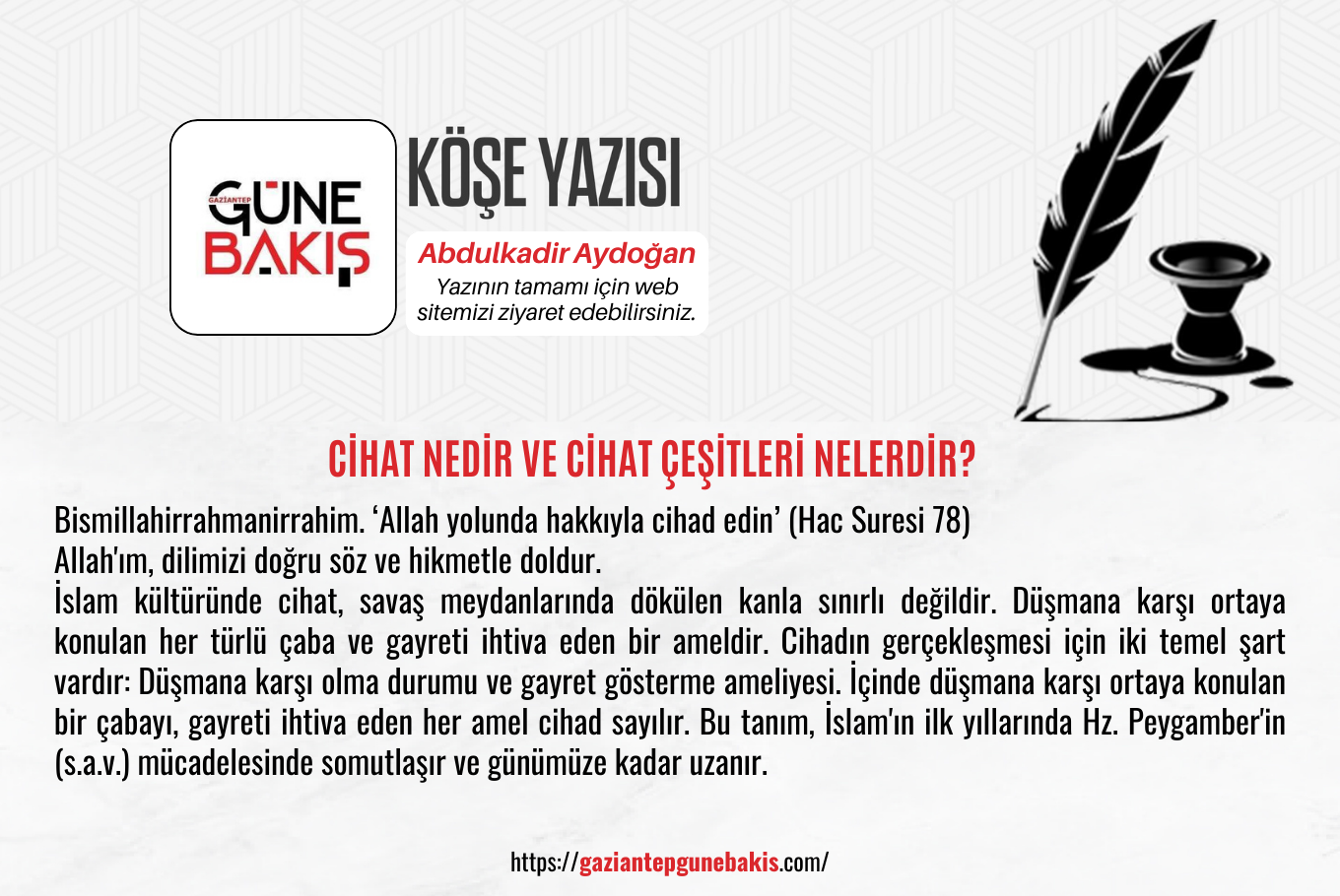 Bismillahirrahmanirrahim. ‘Allah yolunda hakkıyla cihad edin’ (Hac Suresi 78)