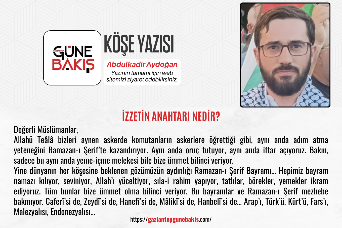 Allahu Teala, yeryüzüne egemen olan, izzetli bir ümmet olmamız için vahdet içerisinde yaşamamızı emrediyor. İzzetin anahtarı vahdettir.