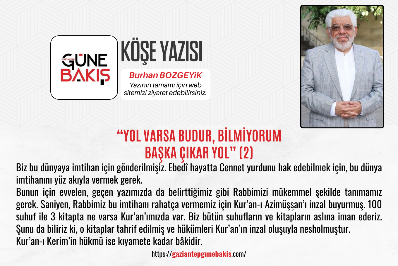 Bunun için evvelen, geçen yazımızda da belirttiğimiz gibi Rabbimizi mükemmel şekilde tanımamız gerek. Saniyen, Rabbimiz bu imtihanı rahatça vermemiz için Kur’an-ı Azimüşşan’ı inzal buyurmuş. 100 suhuf ile 3 kitapta ne varsa Kur’an’ımızda var. Biz bütün suhufların ve kitapların aslına iman ederiz. Şunu da biliriz ki, o kitaplar tahrif edilmiş ve hükümleri Kur’an’ın inzal oluşuyla nesholmuştur.