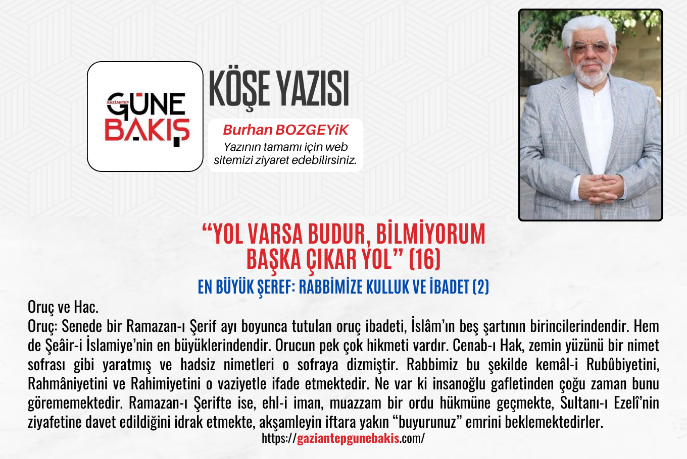 Ramazan-ı Şerifteki oruç, Cenab-ı Hakkın nimetlerinin şükrüne bakmaktadır. Bu şükürde riya yoktur. Hâlistir ve umûnî bir şükrün anahtarıdır.