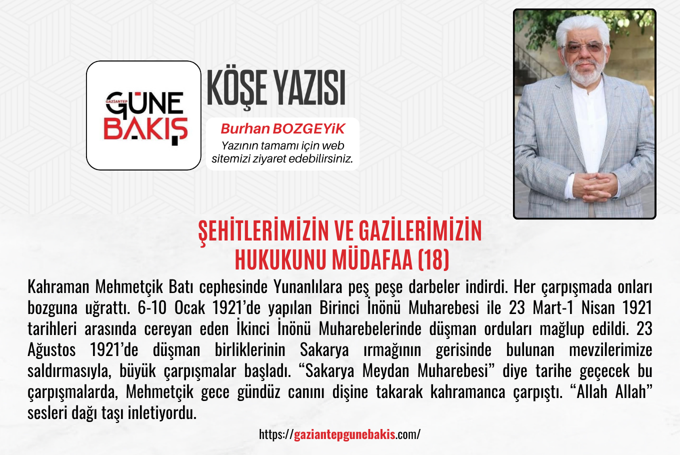 Kahraman Mehmetçik Batı cephesinde Yunanlılara peş peşe darbeler indirdi. Her çarpışmada onları bozguna uğrattı. 6-10 Ocak 1921’de yapılan Birinci İnönü Muharebesi ile 23 Mart-1 Nisan 1921 tarihleri arasında cereyan eden İkinci İnönü Muharebelerinde düşman orduları mağlup edildi. 23 Ağustos 1921’de düşman birliklerinin Sakarya ırmağının gerisinde bulunan mevzilerimize saldırmasıyla, büyük çarpışmalar başladı. “Sakarya Meydan Muharebesi” diye tarihe geçecek bu çarpışmalarda, Mehmetçik gece gündüz canını dişine takarak kahramanca çarpıştı. “Allah Allah” sesleri dağı taşı inletiyordu. Yunanlılar ölümü hiçe sayan bu büyük taarruz karşısında tutunamadı. 10 Eylül 1921 günü yapılan bu umumi hücum üzerine düşman önce durakladı, sonra ele geçirdiği mevzileri birer birer bırakarak ric’at etmeğe başladı. 12 Eylül’de düşman birlikleri bulundukları yerlerden sökülüp atılmıştı. Büyük bozguna uğrayan Yunan birlikleri perişan bir vaziyette Sakarya ırmağının batısına çekildi. 13 Eylül’de Sakarya’nın batısına atılan düşman takip edilerek Eskişehir’e kadar kovalandı. 22 gün 22 gece devam eden Sakarya Meydan Muharebesi 13 Eylül 1921’de zaferle neticelendi. Bu savaşta zayiatımız maalesef ağır olmuştur. Savaşta yedi tümen kumandanımız ve üç yüz elli subayımız şehit olmuştur. Sekiz yüz subayımız yaralanmıştır. Şehit olan er sayısı ise iki bin dokuz yüzdü. On üç bin er de yaralanmıştı.