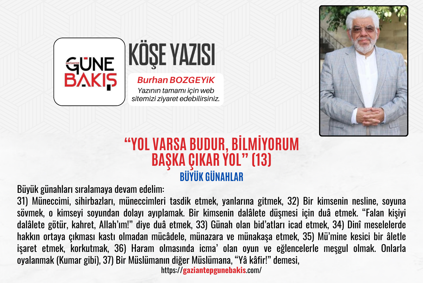 İbn-i Abbas’ın (r.a.) dediği gibi “Günah-ı Kebâir”i daha da arttırmak mümkün. Biz bu bahsi, “İrşadü’l Gafilin”deki şu güzel değerlendirme ile noktalamak istiyoruz: