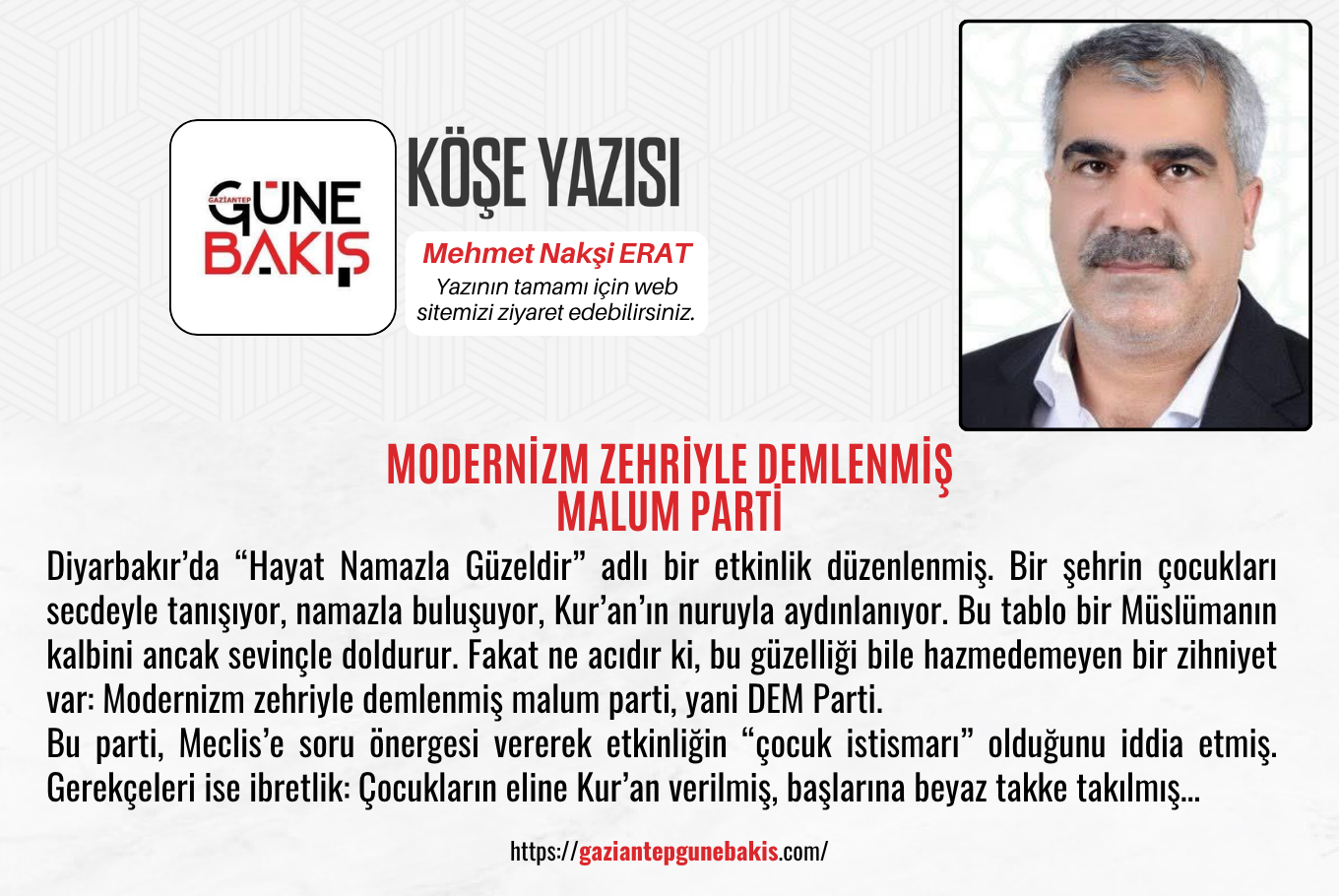 Diyarbakır’da “Hayat Namazla Güzeldir” adlı bir etkinlik düzenlenmiş. Bir şehrin çocukları secdeyle tanışıyor, namazla buluşuyor, Kur’an’ın nuruyla aydınlanıyor. Bu tablo bir Müslümanın kalbini ancak sevinçle doldurur. Fakat ne acıdır ki, bu güzelliği bile hazmedemeyen bir zihniyet var: Modernizm zehriyle demlenmiş malum parti, yani DEM Parti.